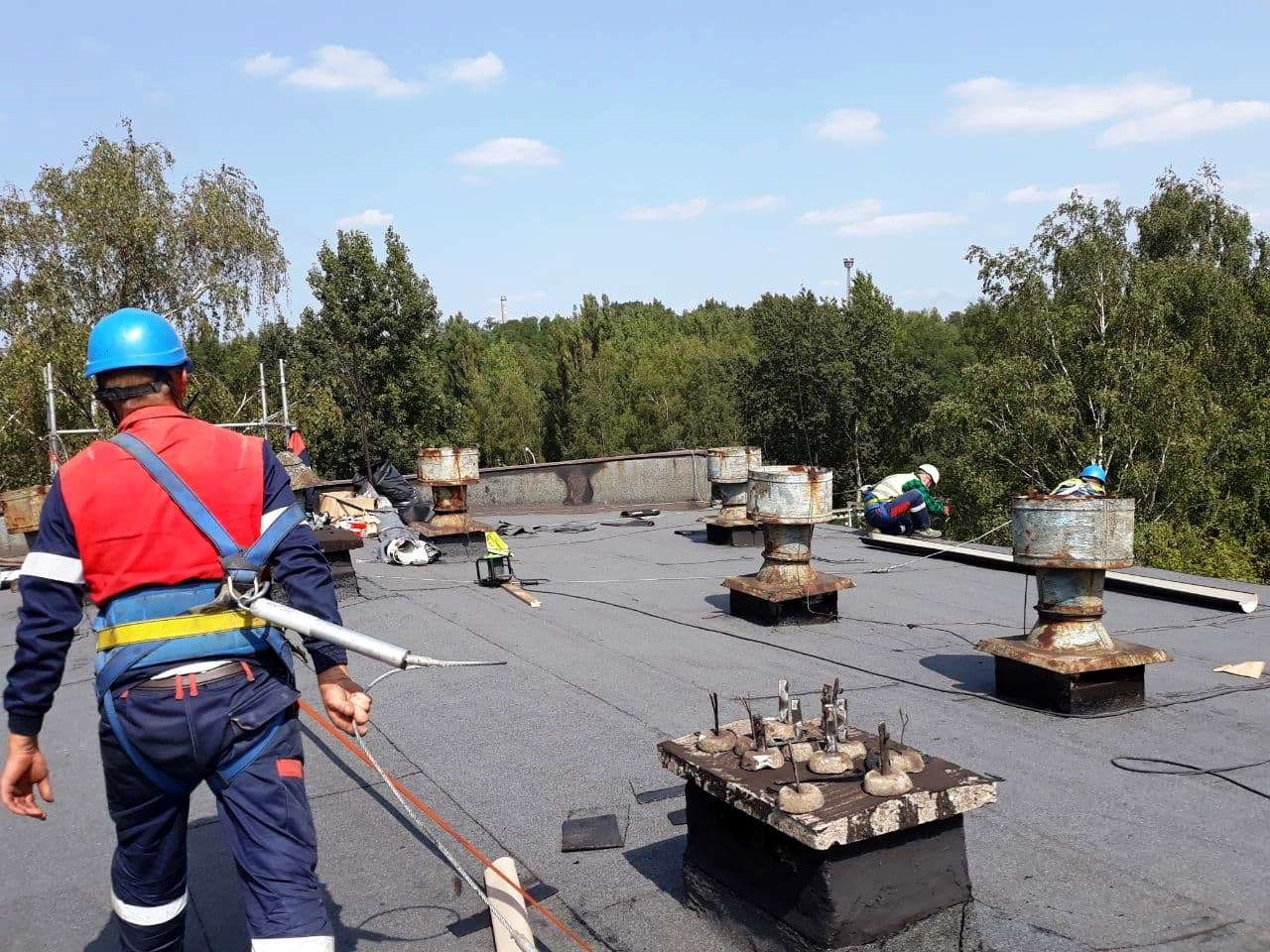 Prace wykonywane są na wysokości, z użyciem wysokiej jakości sprzętu zabezpieczającego przed upadkiem