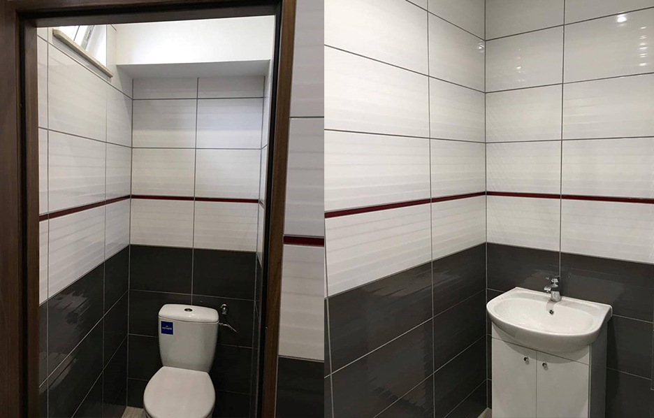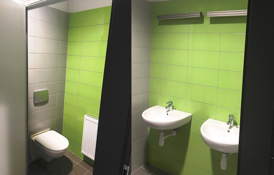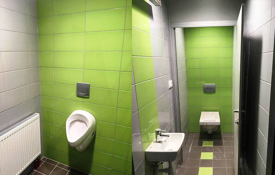 Realizacje łazienek w obiektach biurowych i użyteczności publicznej.